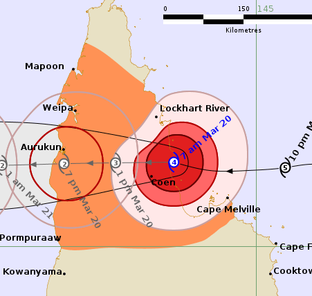 Severe Tropical Cyclone Narelle Crossed the Qld East Coast around 7.00 am This Morning Friday 20/03/2026 about 50km NE of Coen as a category 4 System .